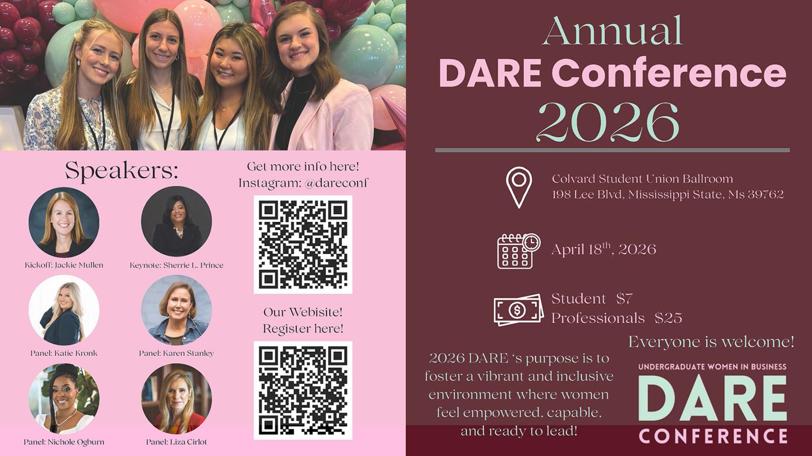 The 2026 DARE Conference continues this mission by empowering women to navigate the exciting and ever-evolving world of business. By connecting students, alumni, and professionals through a dynamic and inspiring conference experience, DARE envisions a future where women are equipped and empowered to pursue whatever they dare to dream.